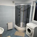 Bathroom facilities also include a shower and a washing machine.
